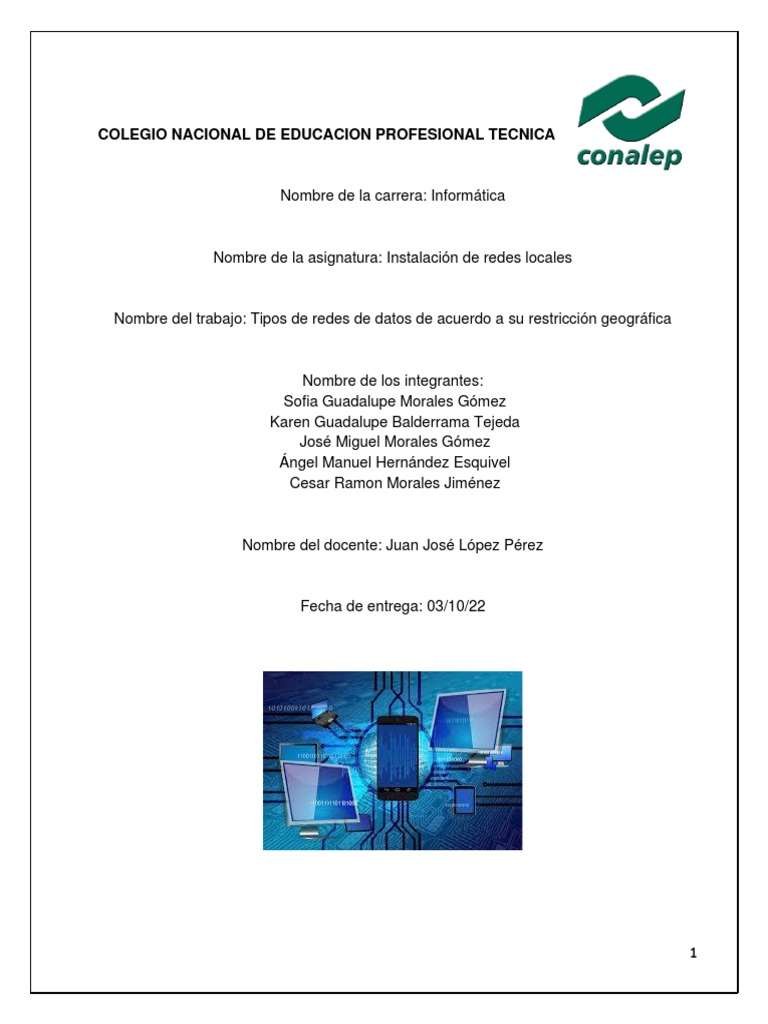 Nombre del trabajo: Tipos de redes de datos de acuerdo a su restricción geográfica