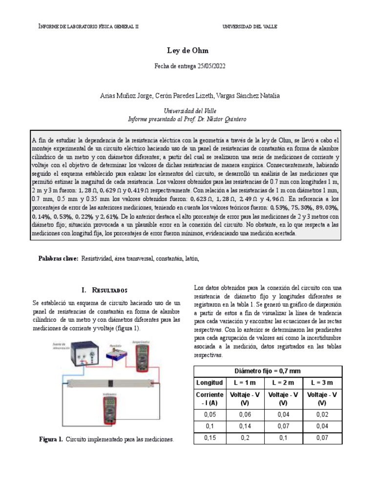 Palabras clave: Resistividad, área transversal, constantán, latón,