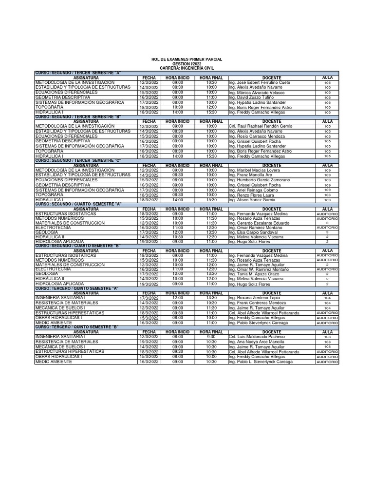 ROL DE EXAMENES PRIMER PARCIAL