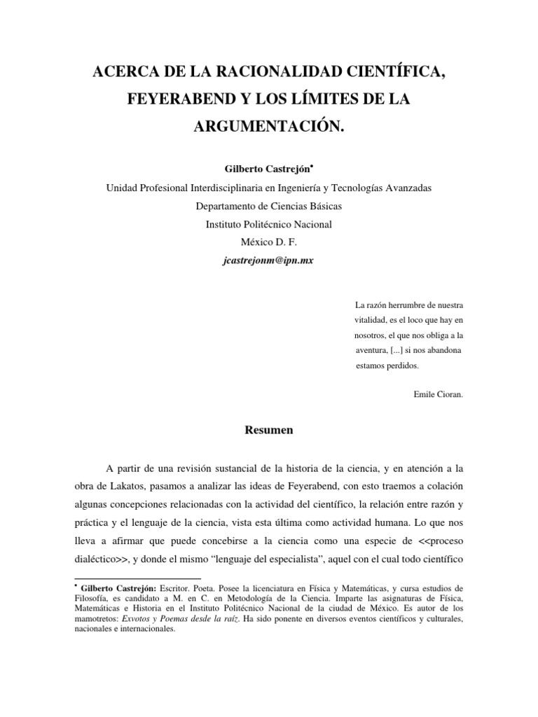 ACERCA DE LA RACIONALIDAD CIENTFICA, FEYERABEND Y LOS LMITES DE LA ARGUMENTACIN.