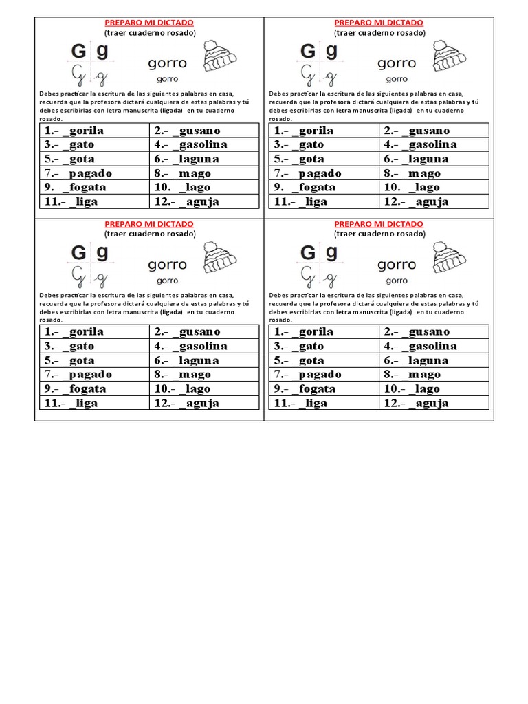 Debes practicar la escritura de las siguientes palabras en casa, Debes practicar la escritura de las siguientes palabras en casa,