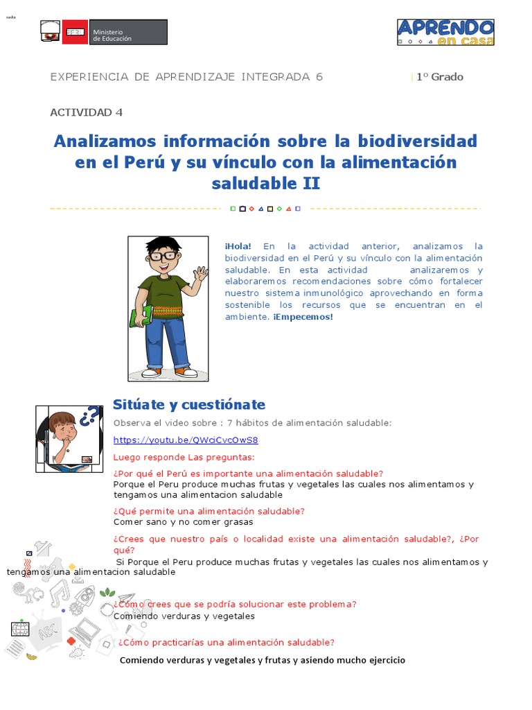 con la alimentación saludable Experiencia de aprendizaje integrada 6