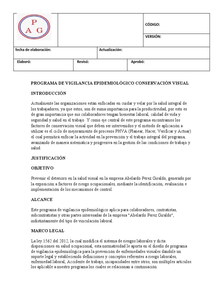 PROGRAMA DE VIGILANCIA EPIDEMIOLÓGICO CONSERVACIÓN VISUAL