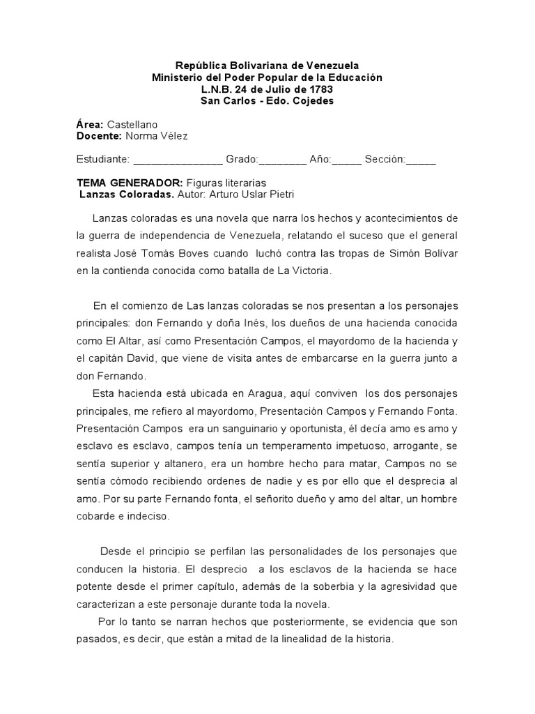 Lanzas coloradas es una novela que narra los hechos y acontecimientos de
