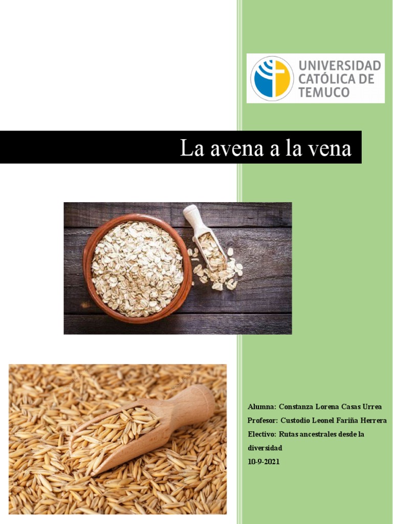 recalcar que aprendí muchas cosas sobre la avena. Principalmente sobre su origen, punto