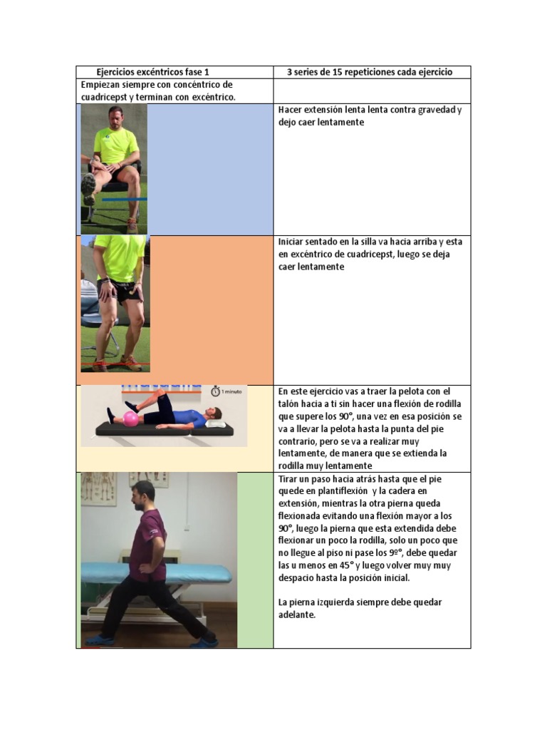 Ejercicios excéntricos fase 1 3 series de 15 repeticiones cada ejercicio