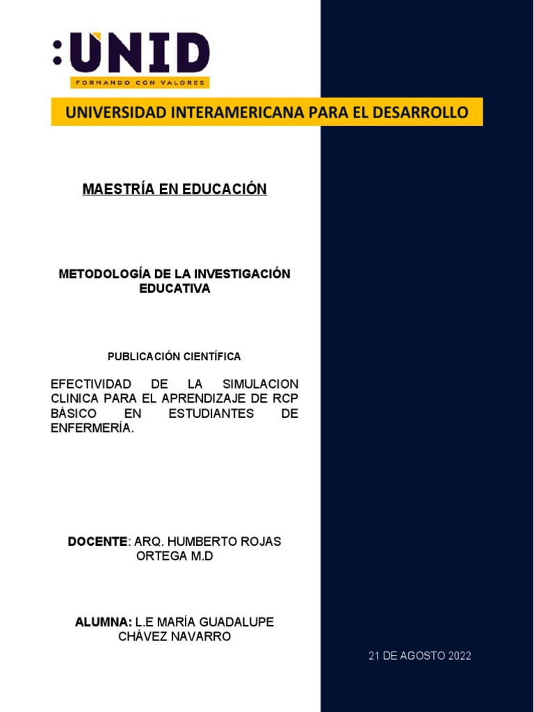 PALABRAS CLAVE: simulación clínica, aprendizaje, RCP, enfermería