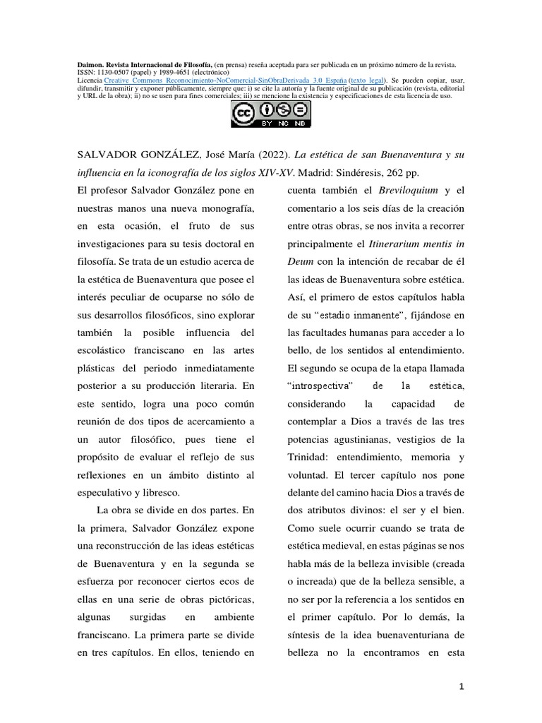 SALVADOR GONZÁLEZ, José María (2022). La estética de san Buenaventura y su