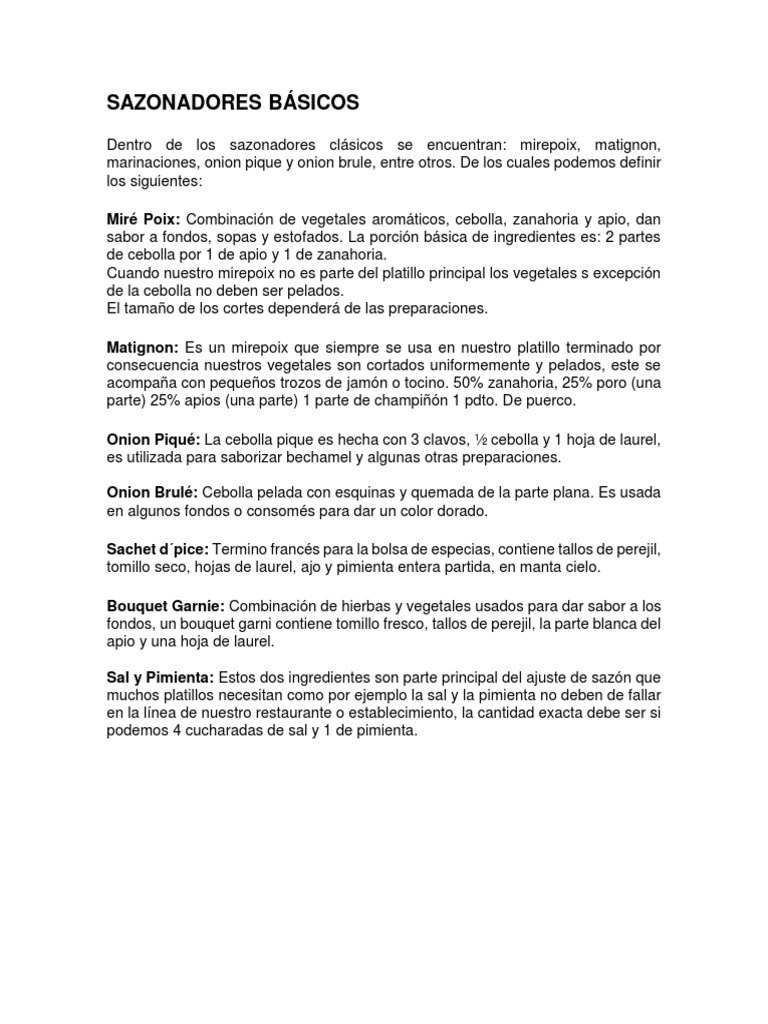 sabor a fondos, sopas y estofados. La porción básica de ingredientes es: 2 partes