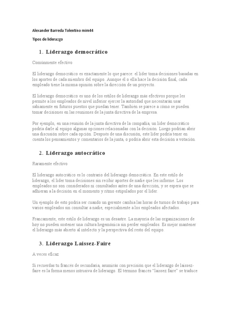 encontramos hoy. Para ayudarlo a comprender el impacto que cada tipo de líder tiene en