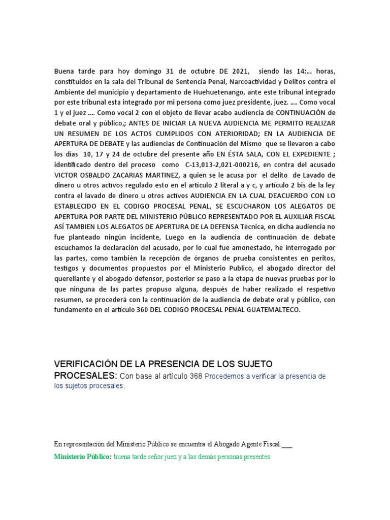 Juez: Buena tarde a todos, con base al articulo 360 de nuestra ley