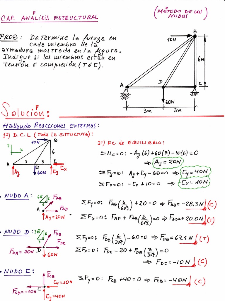 Usandoel métodode los Rudos,ealculela fuerzaen cada miembrode eadauna de