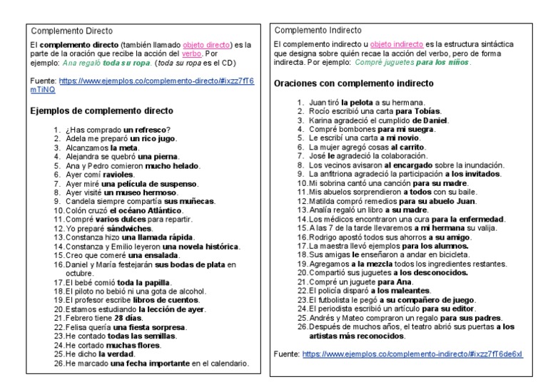 Fuente: https://www.ejemplos.co/complemento-directo/#ixzz7fT6 Oraciones con complemento indirecto