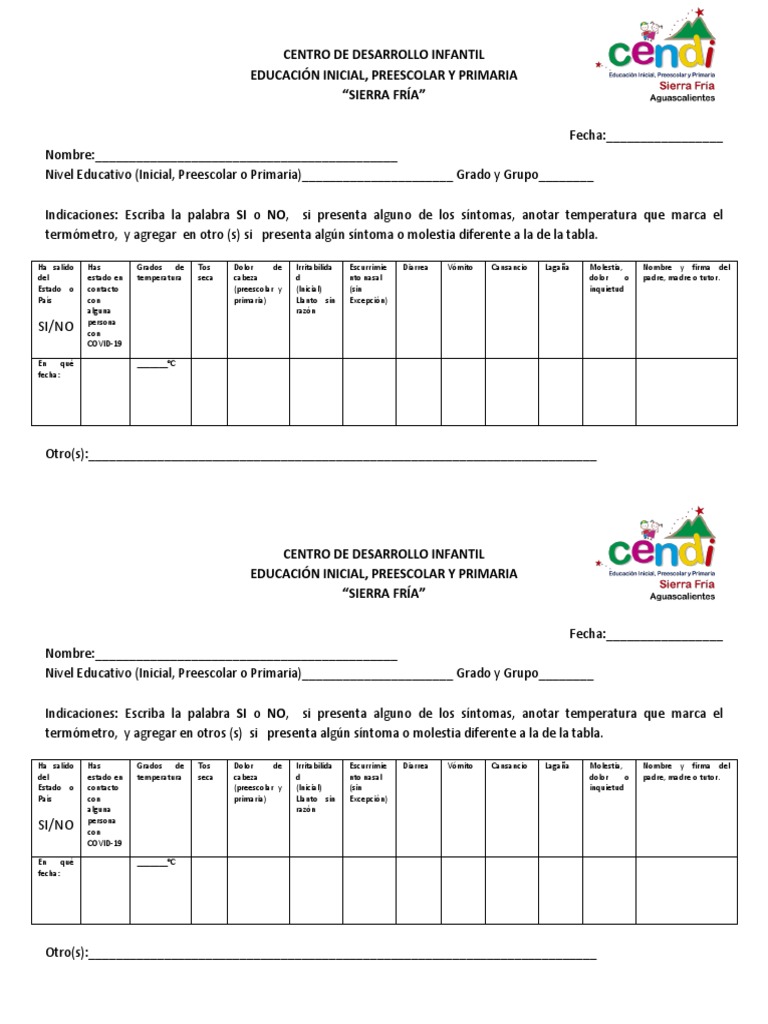 Ha salido Has Grados de Tos Dolor de Irritabilida Escurrimie Diarrea Vómito Cansancio Lagaña Molestia, Nombre y firma del