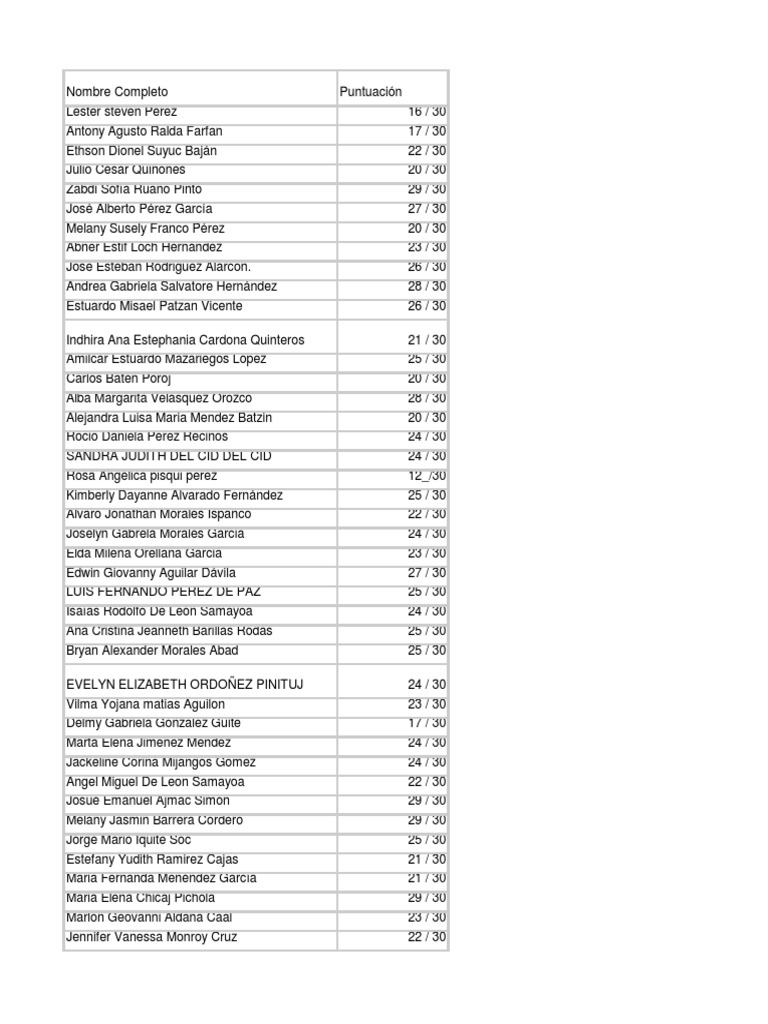 Nombre Completo Puntuación