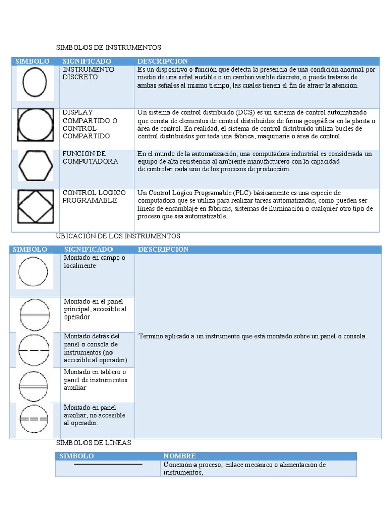 SIMBOLO SIGNIFICADO DESCRIPCION