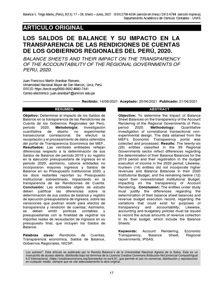 Palabras clave: Rendición de Cuentas, Transparency, Balance Sheet, Regional