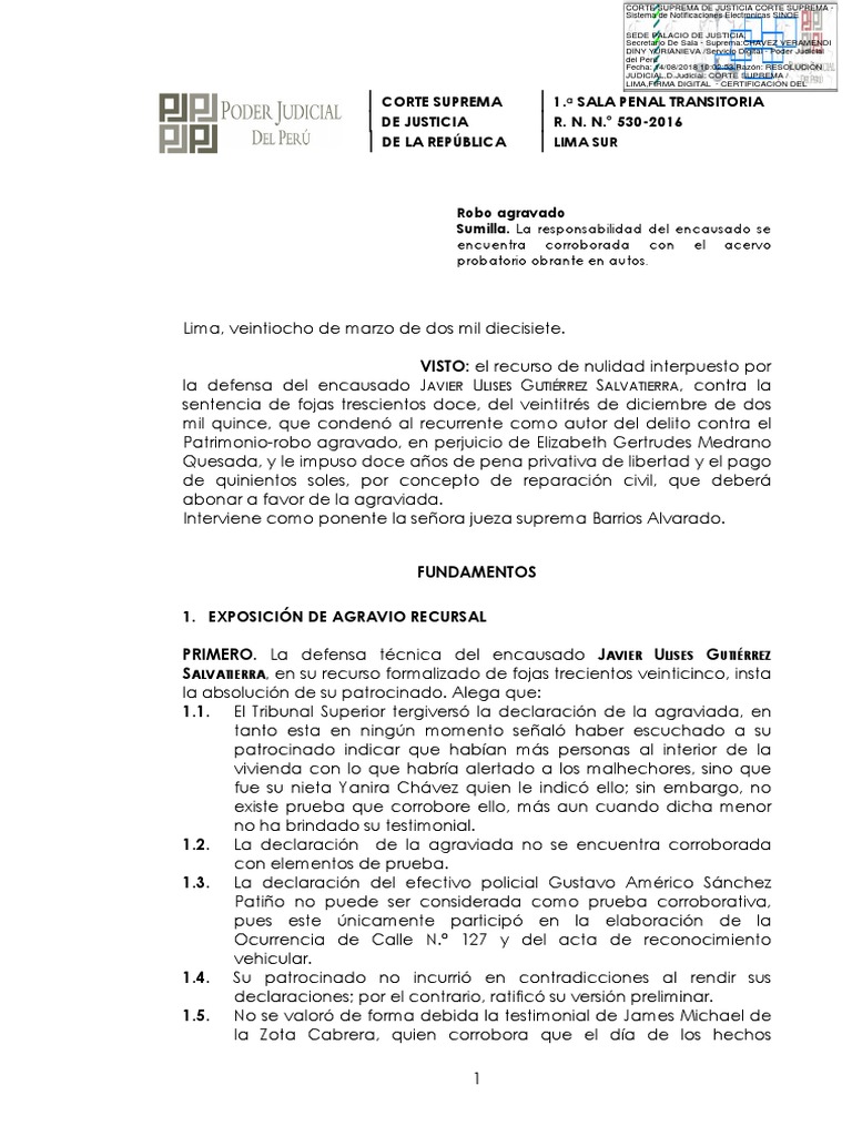 que condenó a Javier Ulises Gutiérrez Salvatierra como autor del delito