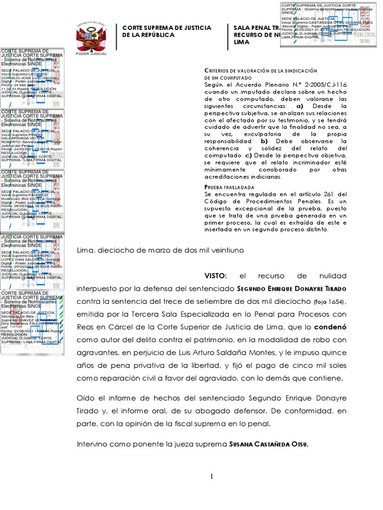 SUPREMA / LIMA,FIRMA DIGITAL VISTO: el recurso de nulidad