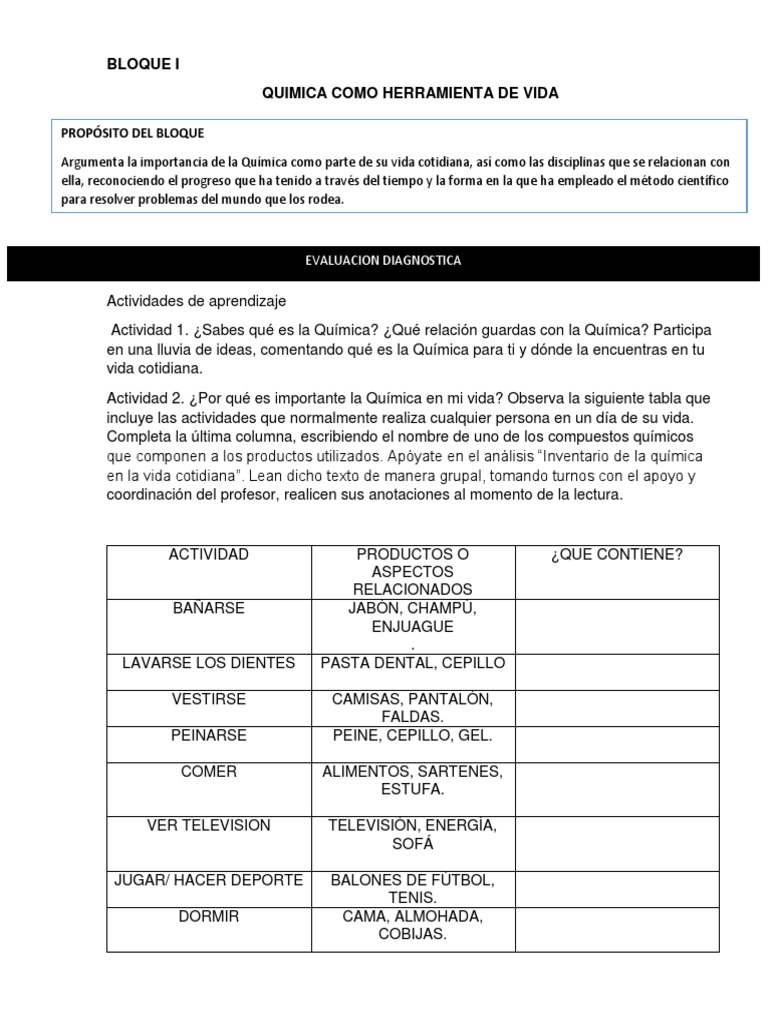 que componen a los productos utilizados. Apóyate en el análisis “Inventario de la química