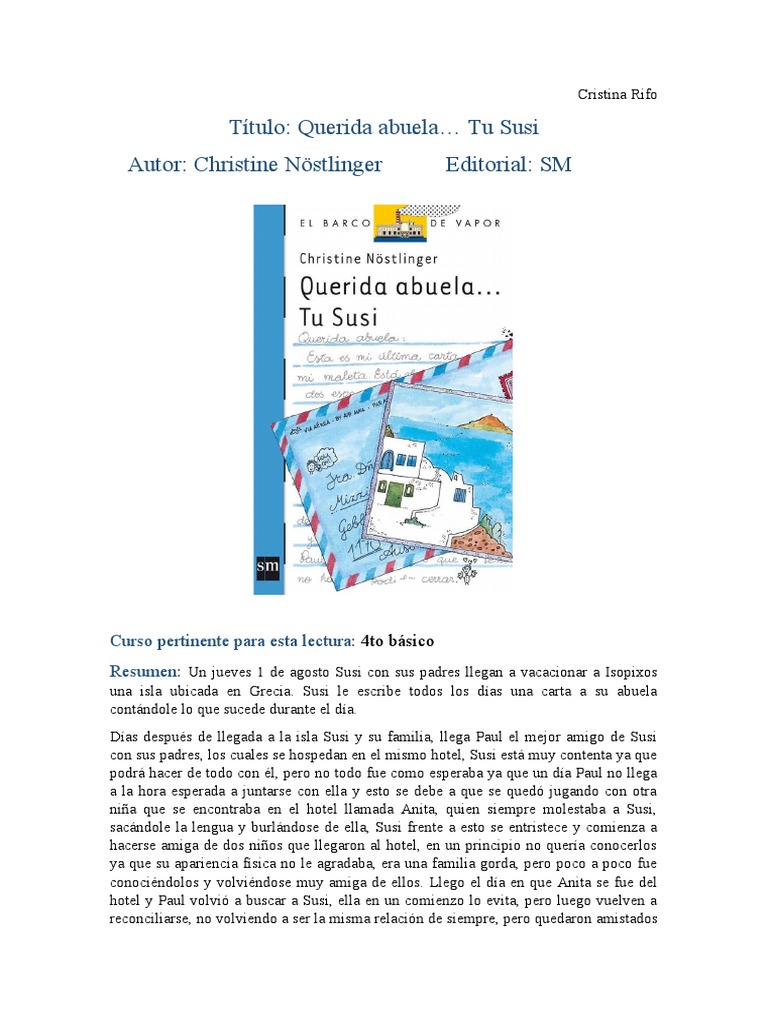que sí. Todos estos sucesos son contados a través de cartas a la abuela de Susi,