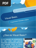 Tipo Aritmtico Operacin Exponenciacin Cambio de signo (operador unario) Multiplicacin, divisin Divisin entera Resto de una divisin entera Suma y resta Concatenar o enlazar Igual a Distinto Menor que / menor o igual que Mayor que / mayor o igual que Comparar dos expresiones de caracteres Comparar dos referencias a objetos Negacin And Or inclusivo Or exclusivo Equivalencia (opuesto a Xor) Implicacin (False si el primer operando es True y el segundo operando es False) Tabla 3.3. Operadores de Visual Basic 6.0. Operador en Vbasic ^ *, / \ Mod +, & + = <> < <= > >= Like Is Not And Or Xor Eqv Imp