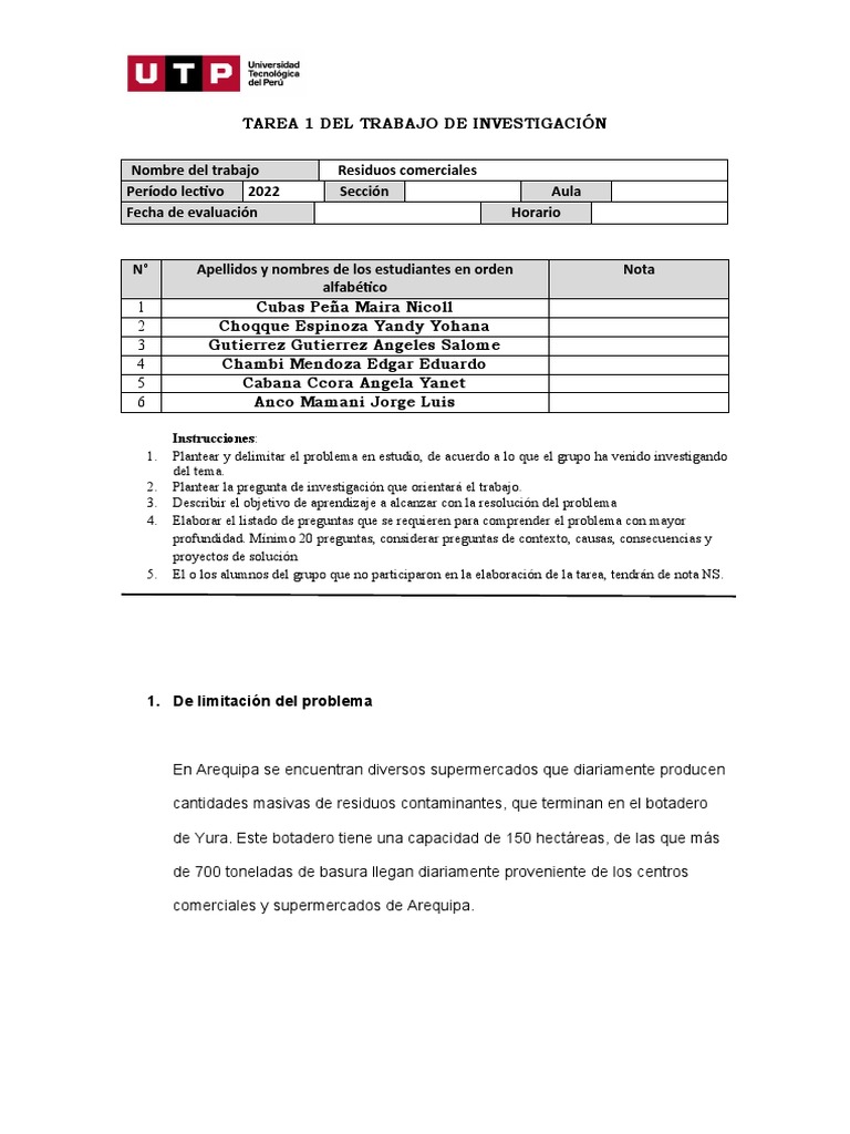 1. Plantear y delimitar el problema en estudio, de acuerdo a lo que el grupo ha venido investigando