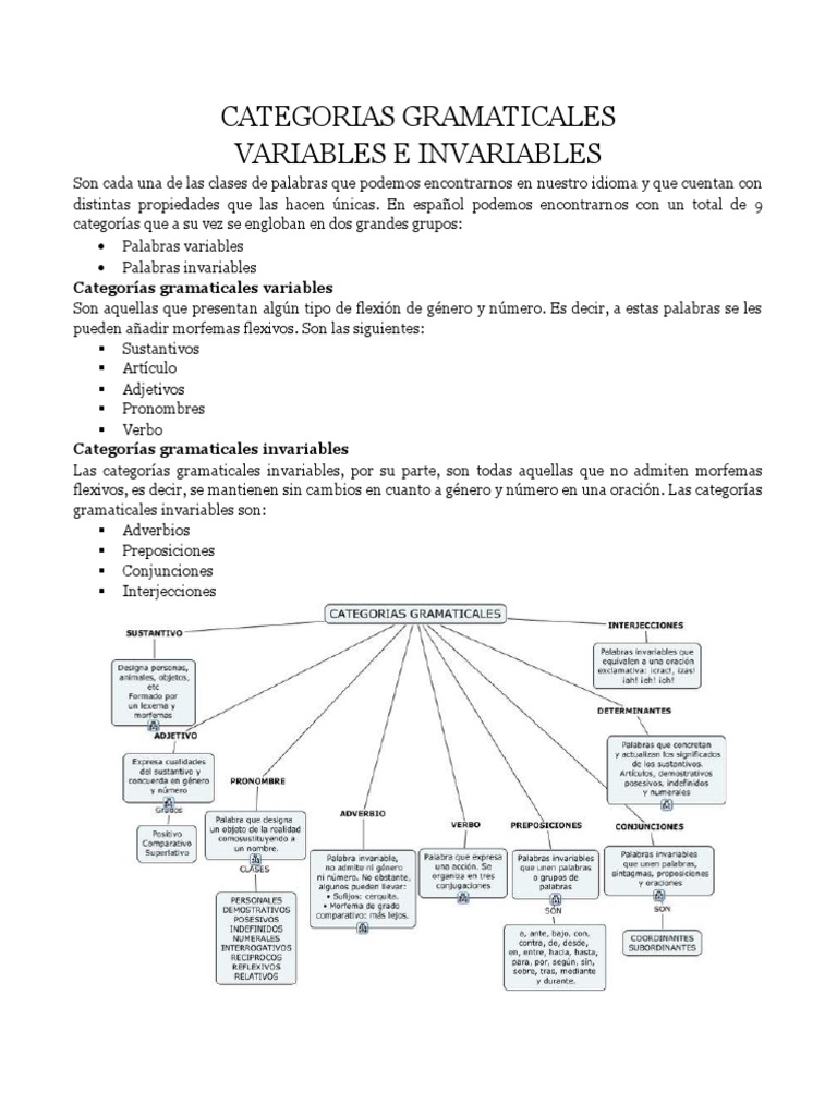 Las categorías gramaticales invariables, por su parte, son todas aquellas que no admiten morfemas