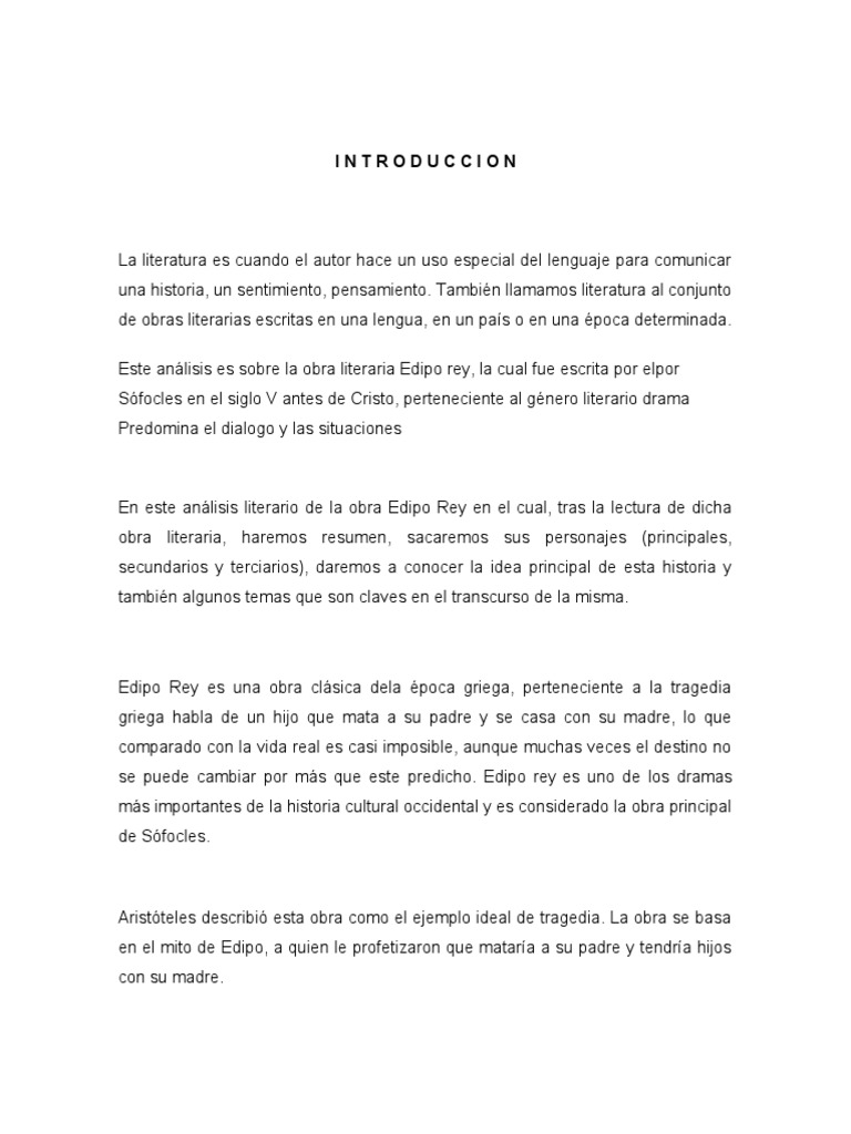 Este análisis es sobre la obra literaria Edipo rey, la cual fue escrita por elpor