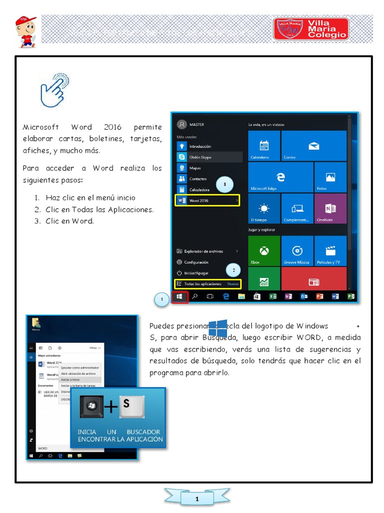 S, para abrir Búsqueda, luego escribir WORD, a medida