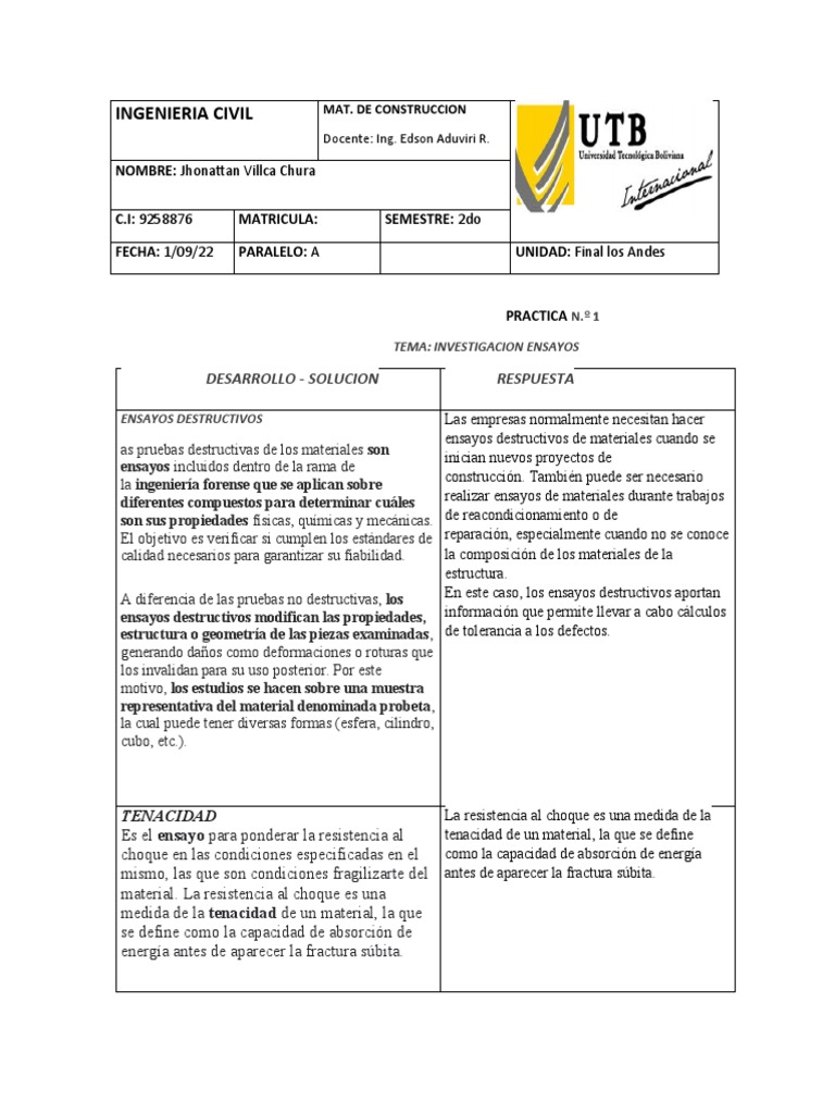 ensayos destructivos modifican las propiedades, información que permite llevar a cabo cálculos
