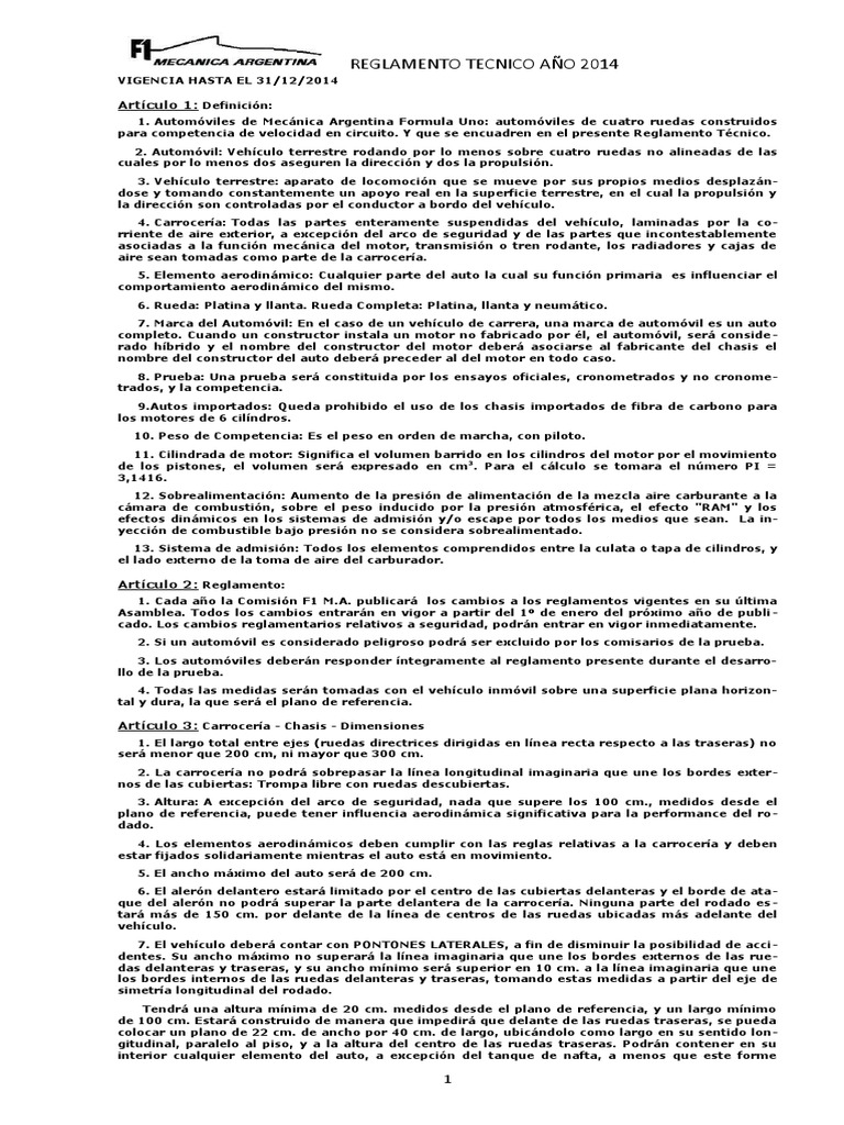 1. Cada año la Comisión F1 M.A. publicará los cambios a los reglamentos vigentes en su última