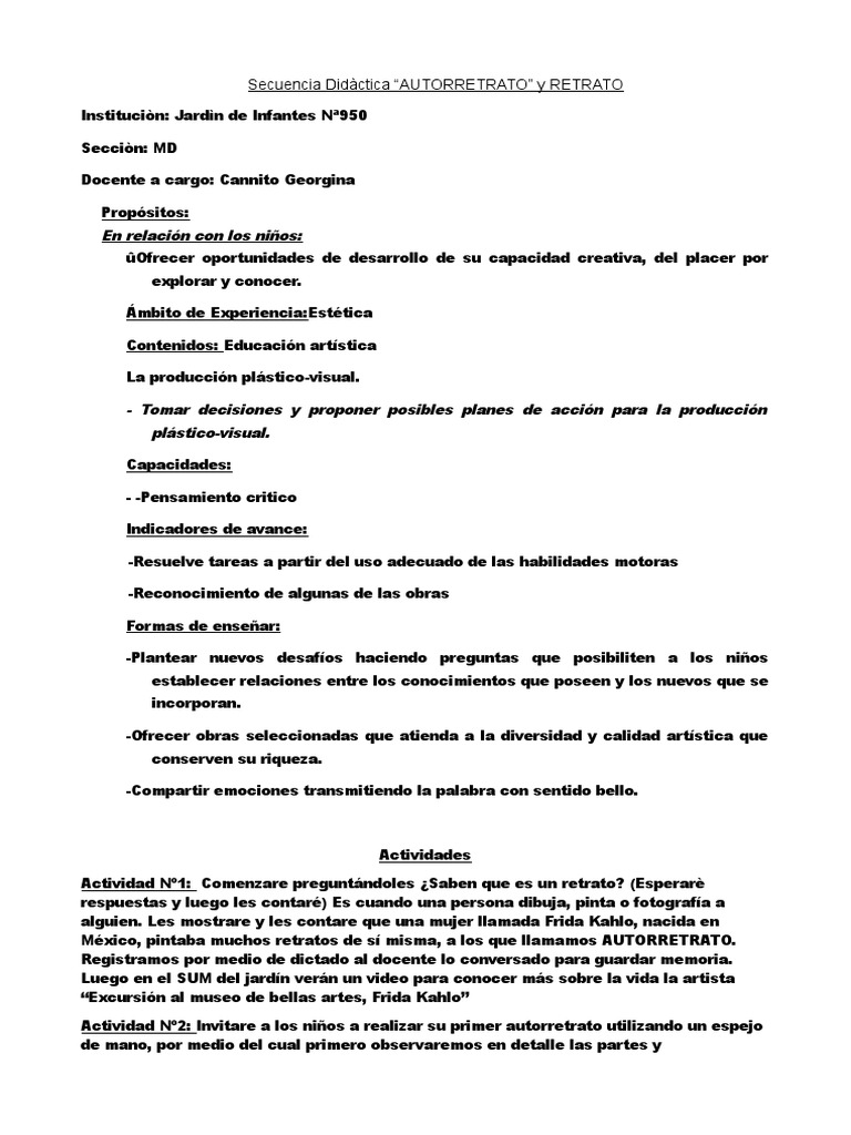 Secuencia Didàctica “AUTORRETRATO” y RETRATO