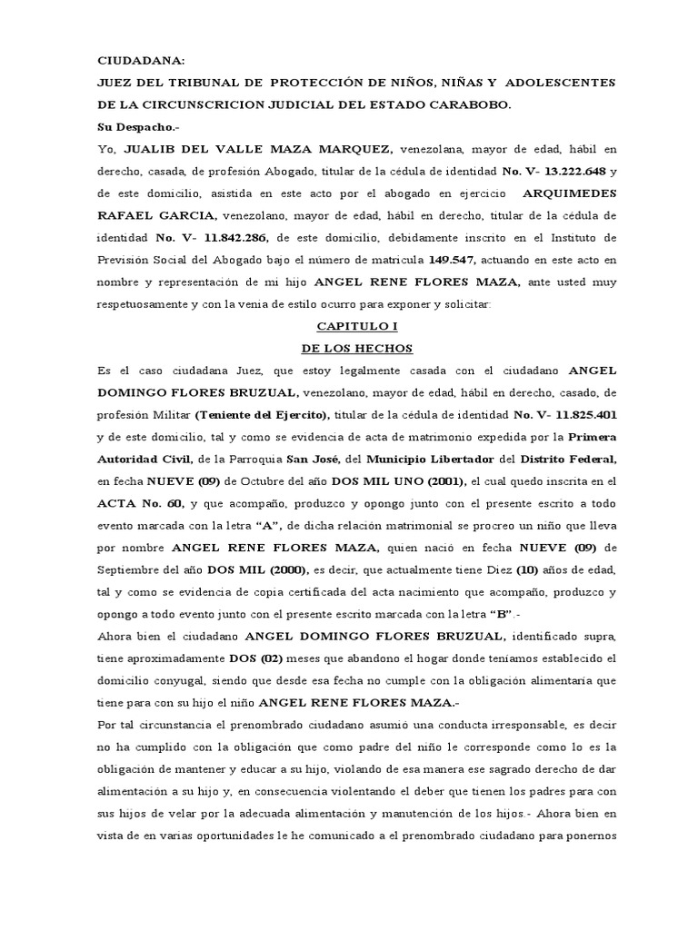 nombre y representación de mi hijo ANGEL RENE FLORES MAZA, ante usted muy