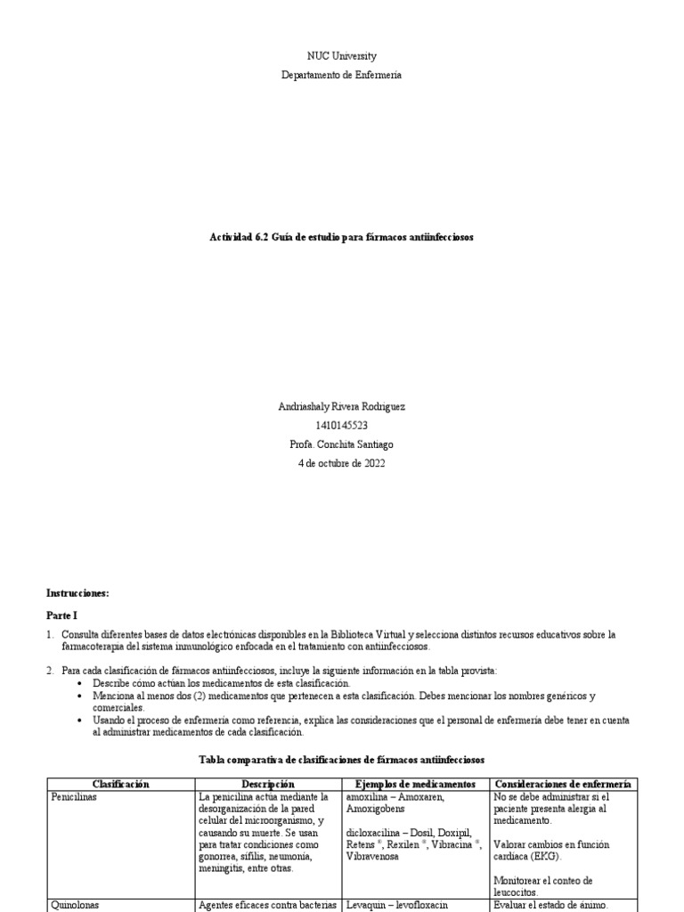 Actividad 6.2 Guía de estudio para fármacos antiinfecciosos