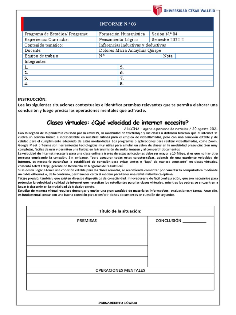 Experiencia Curricular: Pensamiento Lógico Semestre 2022-2