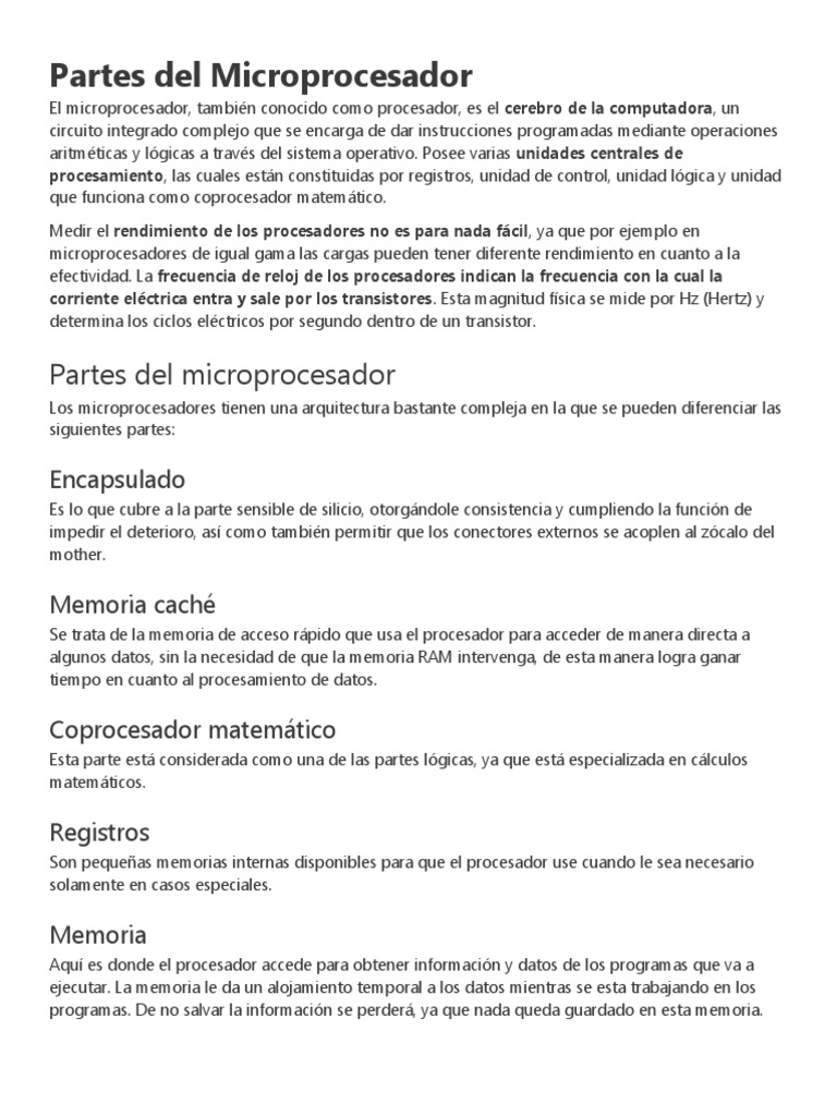 frecuencia y caché, sino que cada procesador tiene ciertas partes que son necesarias conocer. Como