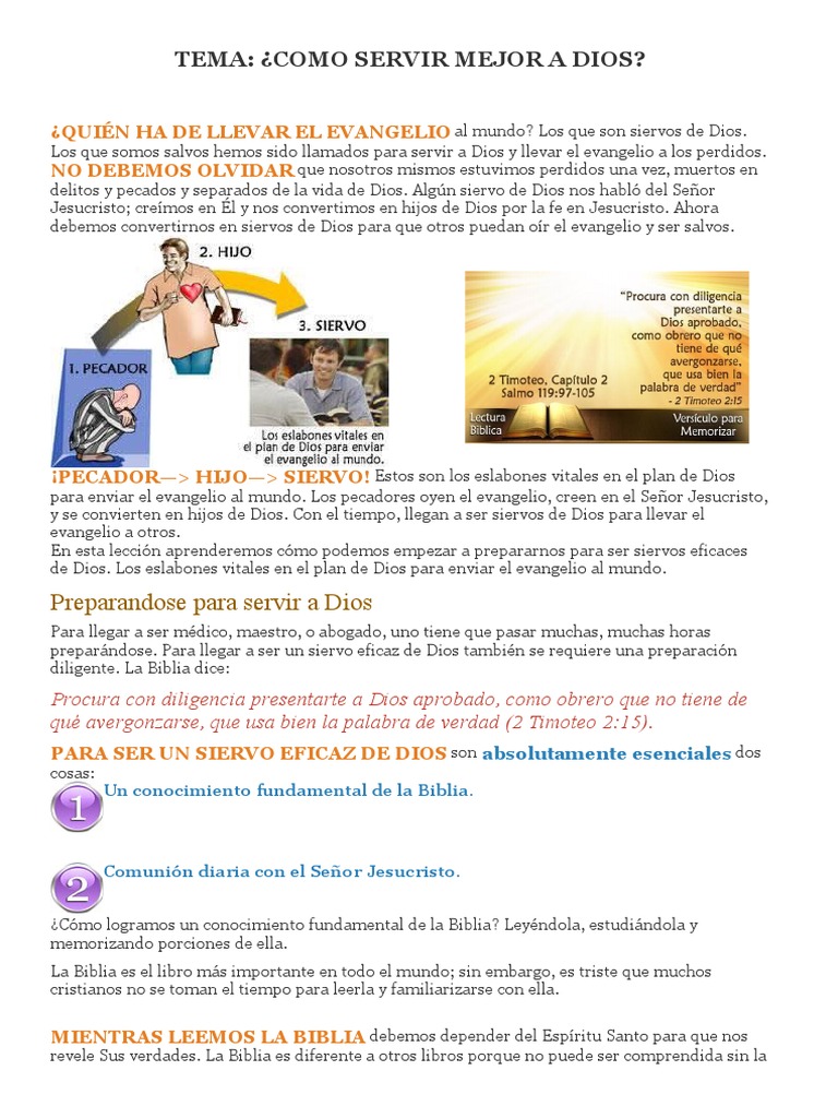 TEMA: ¿COMO SERVIR MEJOR A DIOS?