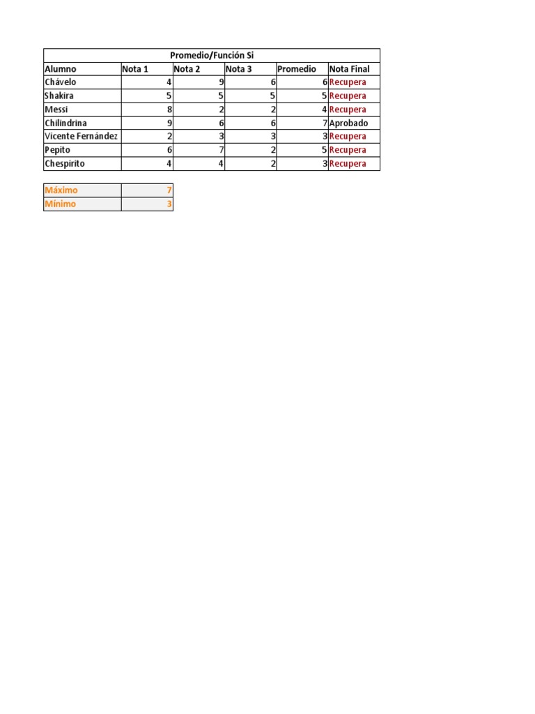 Alumno Nota 1 Nota 2 Nota 3 Promedio Nota Final