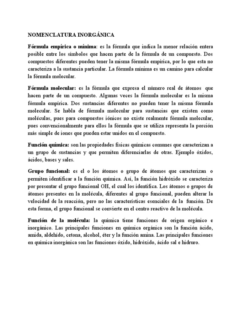 genérico proviene del ácido que la origina, cambiando su terminación hídrico por