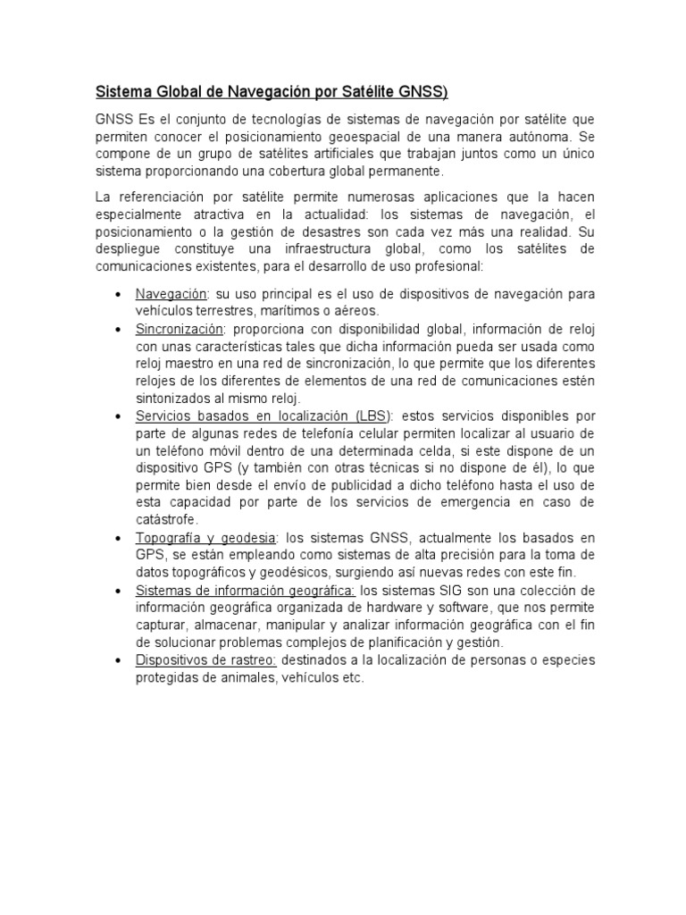 GNSS Es el conjunto de tecnologías de sistemas de navegación por satélite que