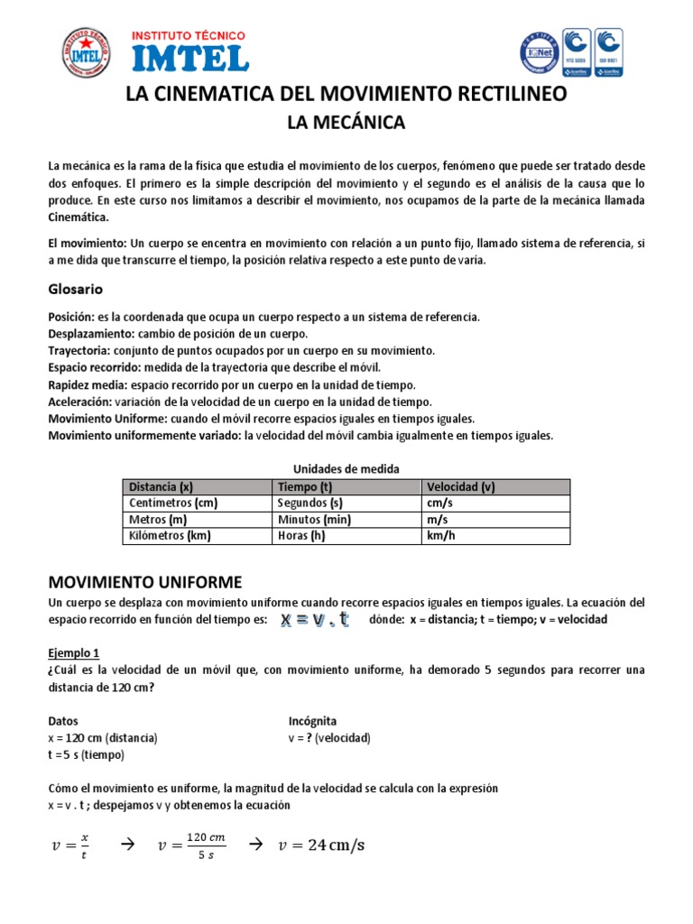 LA CINEMATICA DEL MOVIMIENTO RECTILINEO