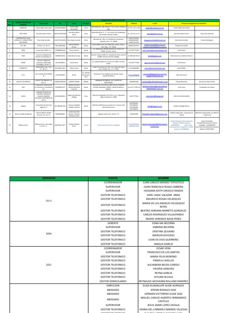 10 COLLECT DE MEXICO CME050509UK8 ALBERTO REENS MORAL 18180002600 contacto@collectdemexico.com Claudia Brewster Gerente Contact Center