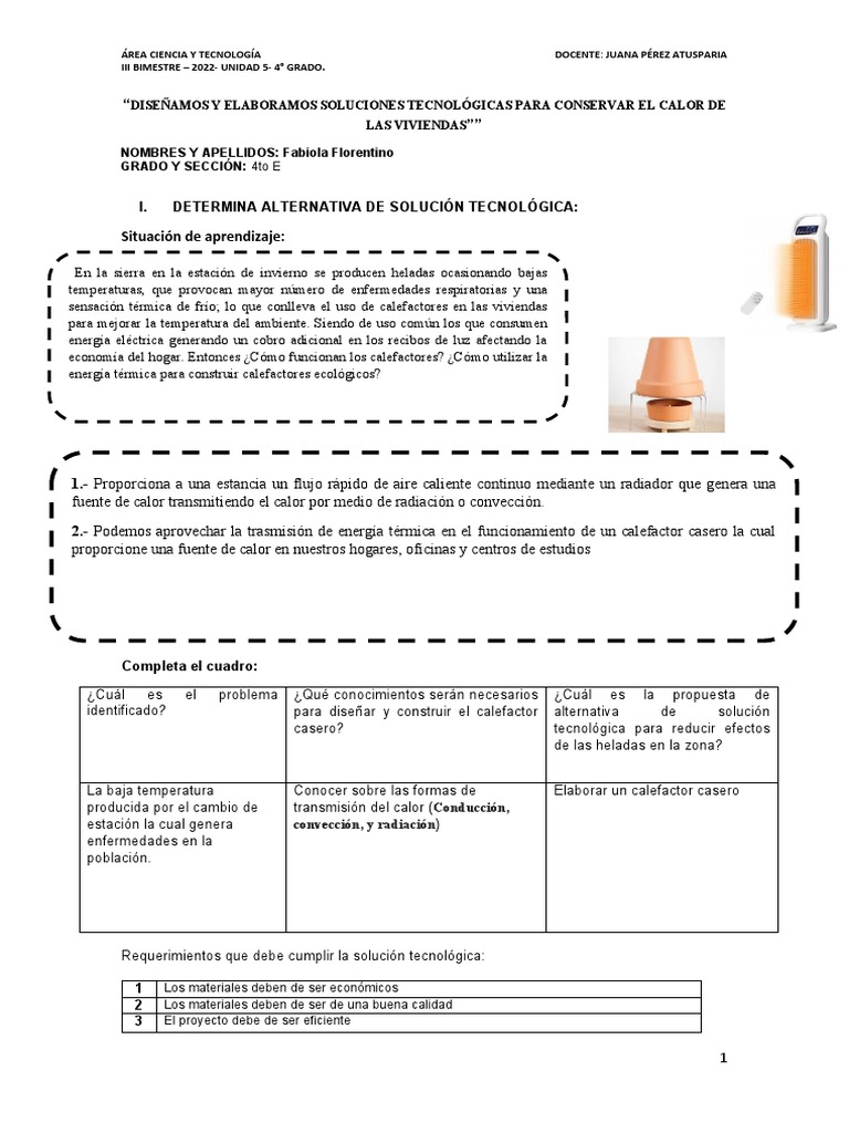 identificado? para diseñar y construir el calefactor alternativa de solución