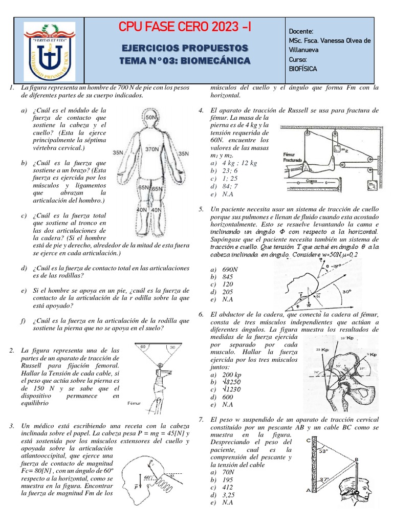 1. La figura representa un hombre de 700 N de pie con los pesos músculos del cuello y el ángulo que forma Fm con la