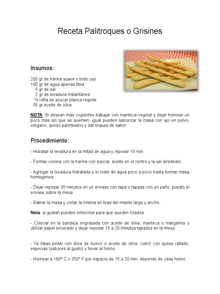 Receta Palitroques o Grisines