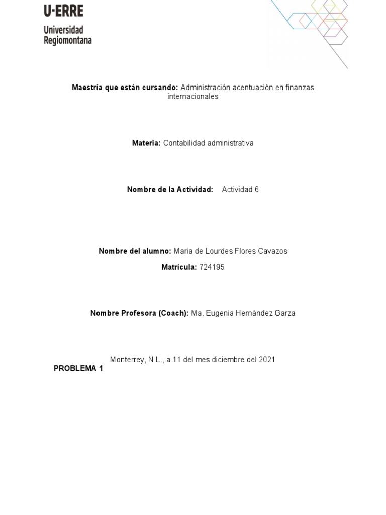 Materia: Contabilidad administrativa