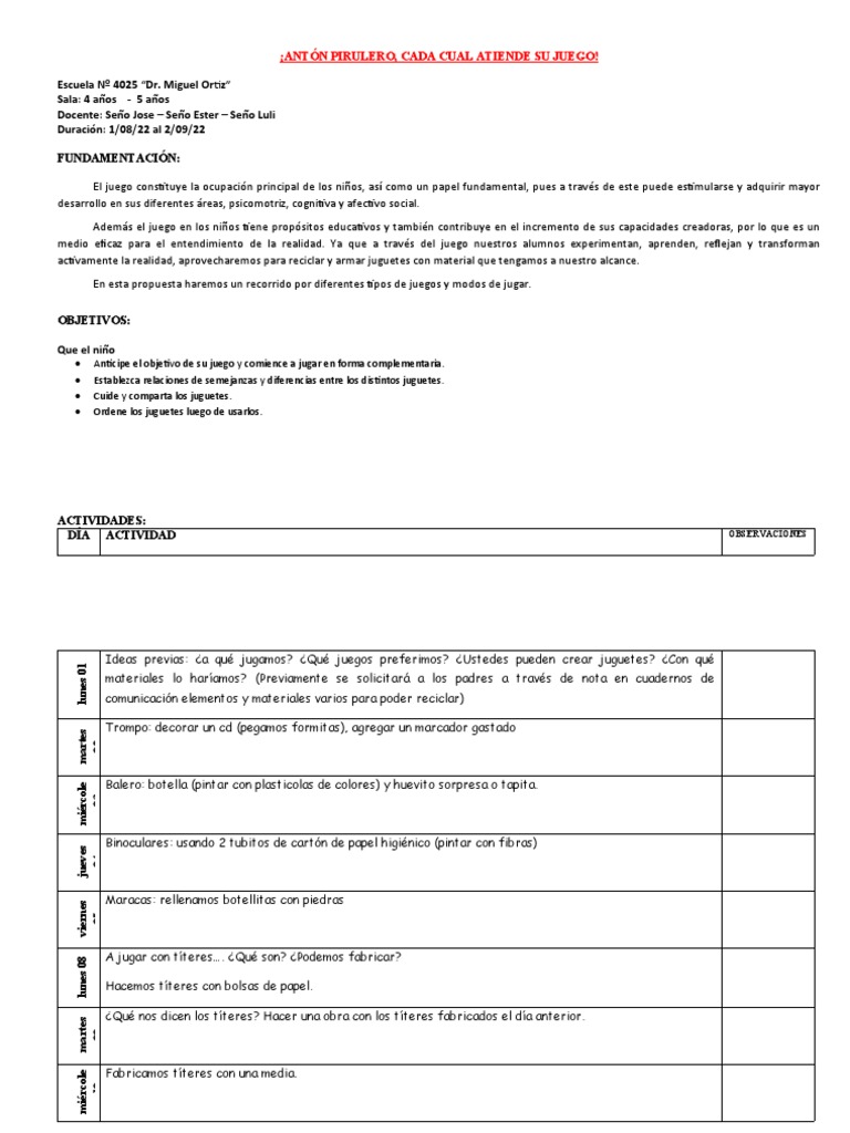 Ideas previas: ¿a qué jugamos? ¿Qué juegos preferimos? ¿Ustedes pueden crear juguetes? ¿Con qué