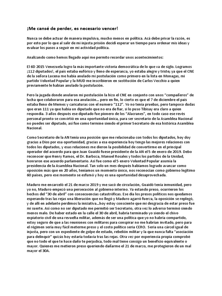 honraron ese acuerdo parlamentario. Así fue como el 5 enero Voluntad Popular asumía la