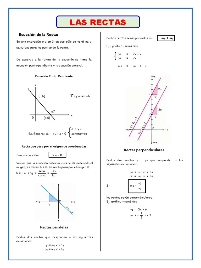 2. Hallar la ecuación de la recta que pasa por el 1er.,